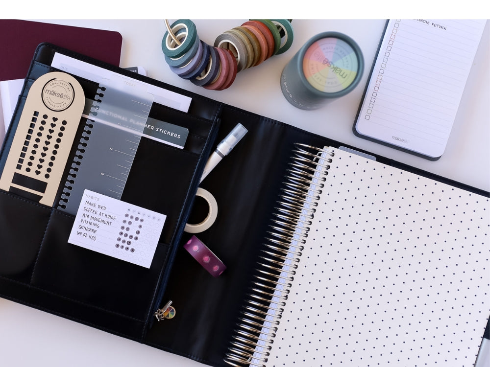 2025 MäksēLife Goal-Setting Weekly Planner – Our signature 2-in-1 system combines goal setting and weekly planning in the same book, so your goals never get lost in a separate journal or app. Based on our proven 8 Life Areas framework, you’ll set intentions, outline actionable goals, and track progress every single week—right alongside your schedule and to-do list.